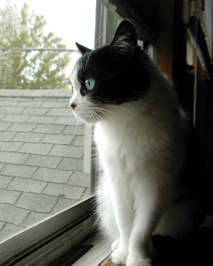 mentioning that there was a cat outside, and that it was sitting on his