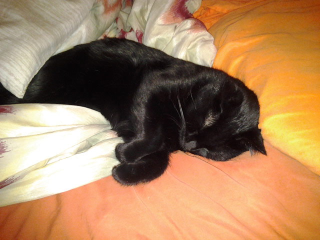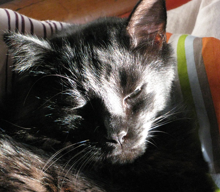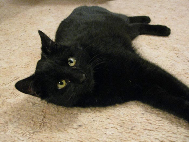 black, stray cat came sauntering along. "What are the odds?" I thought