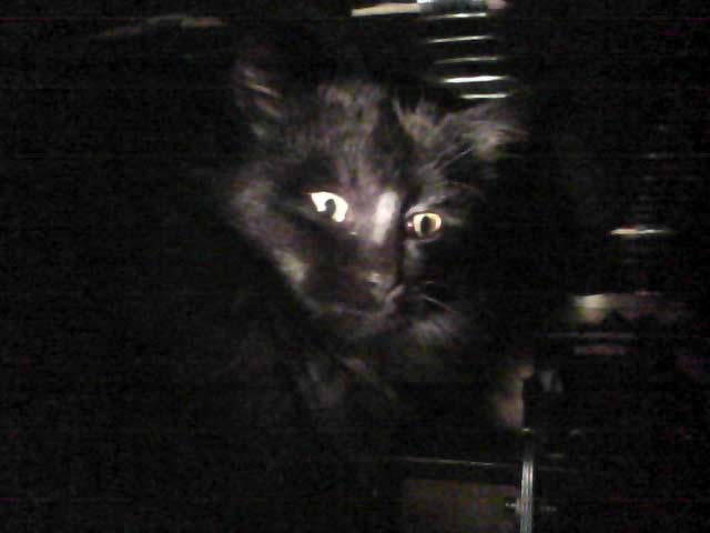 gave it a try. Emerging from the darkness, a tiny black cat popped out